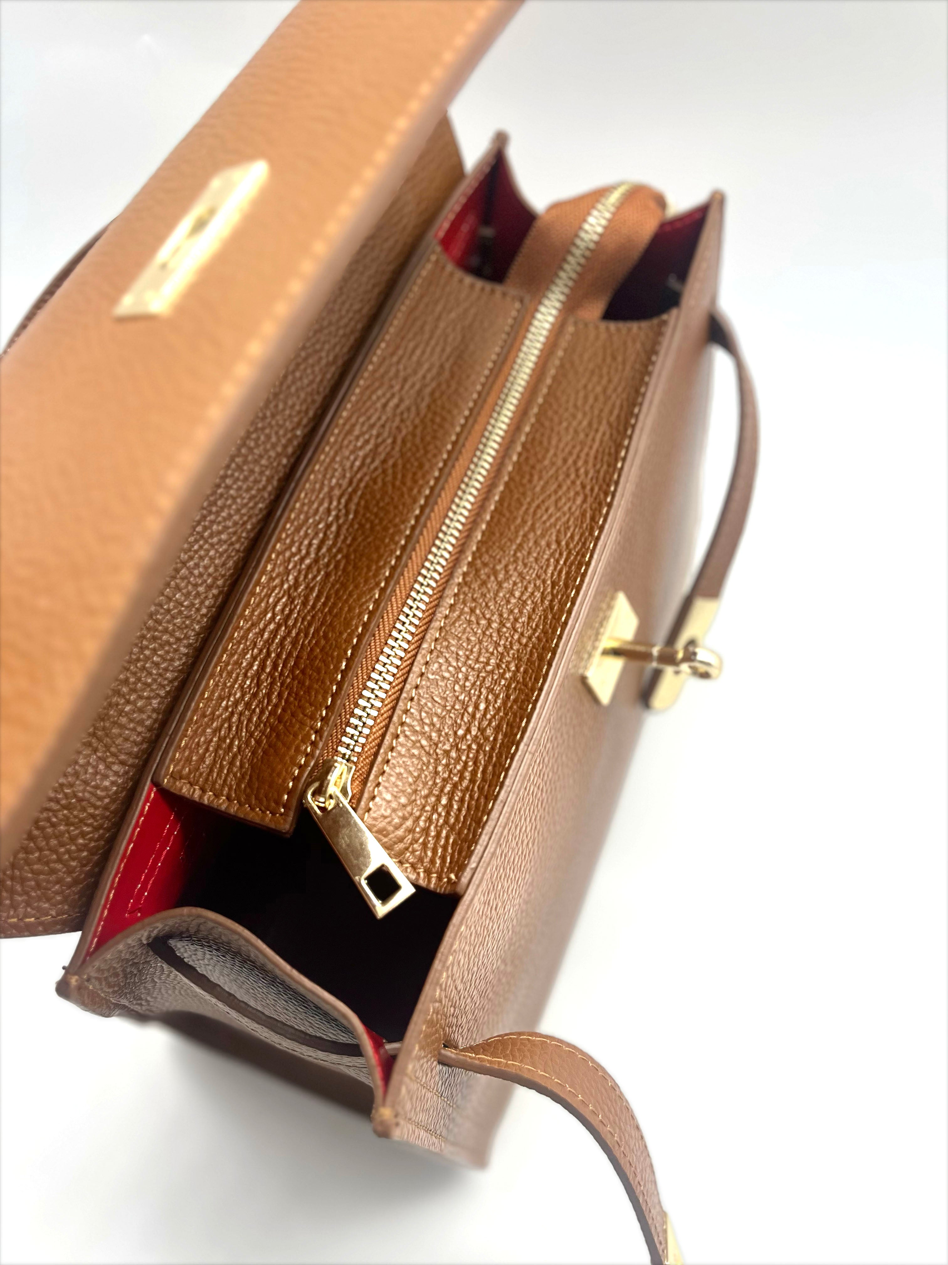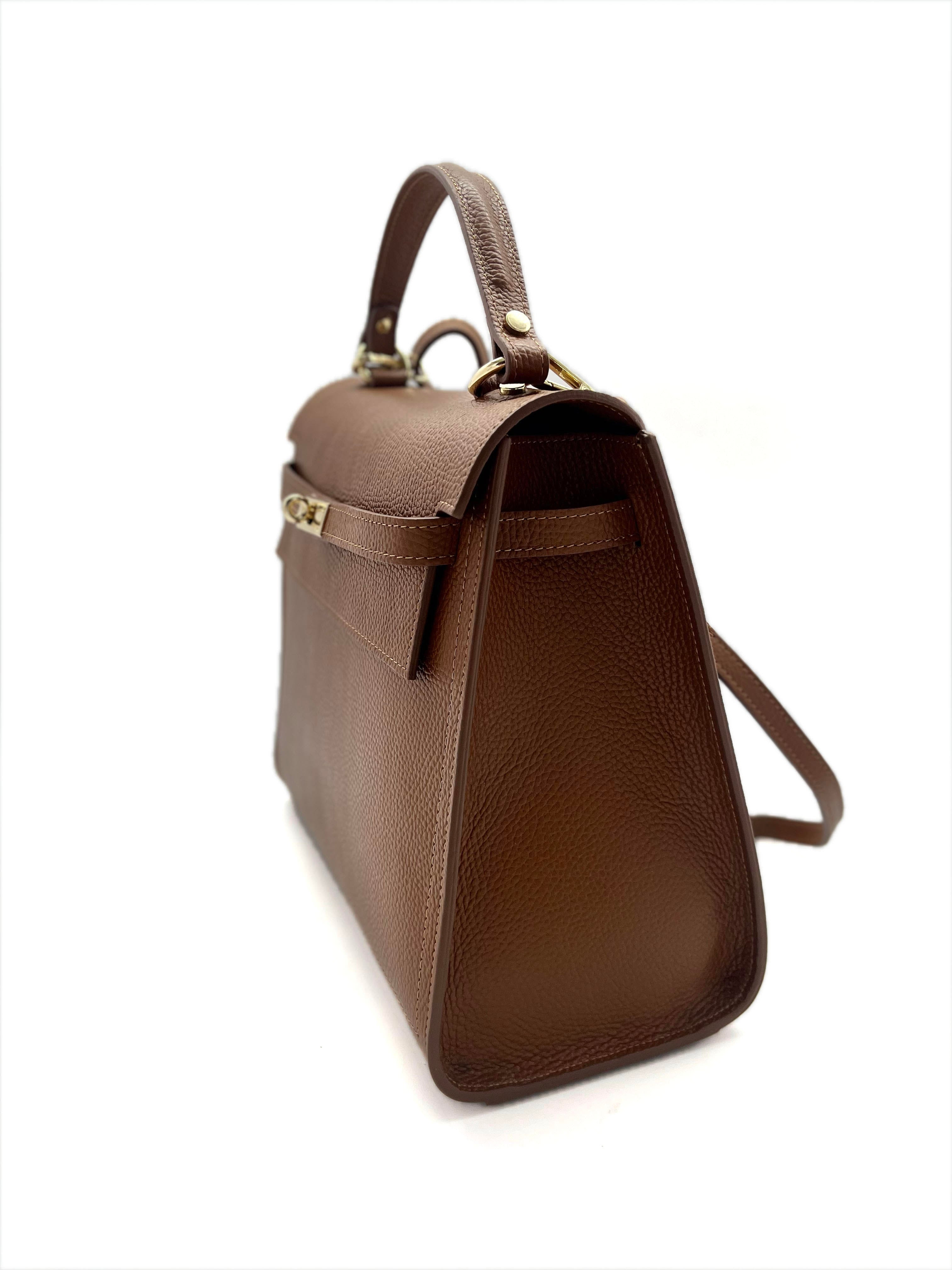 Elegante e raffinata, la borsa KELLY MEDIA è un simbolo di stile senza tempo. Totalmente Made in Italy, la sua pelle di alta qualità, i dettagli dorati e la chiusura a lucchetto conferiscono classe ma soprattutto sicurezza. Versatile e adatto ad ogni look, è l'accessorio perfetto per ogni donna.